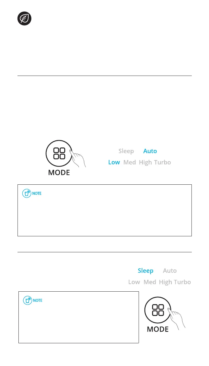 standen. (Auto, Slaap, Laag, Medium, Hoog, Turbo).