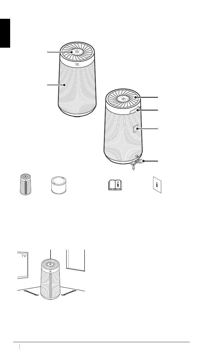 Lasciare 30 - 45 cm di spazio tra il prodotto e TV, radio,