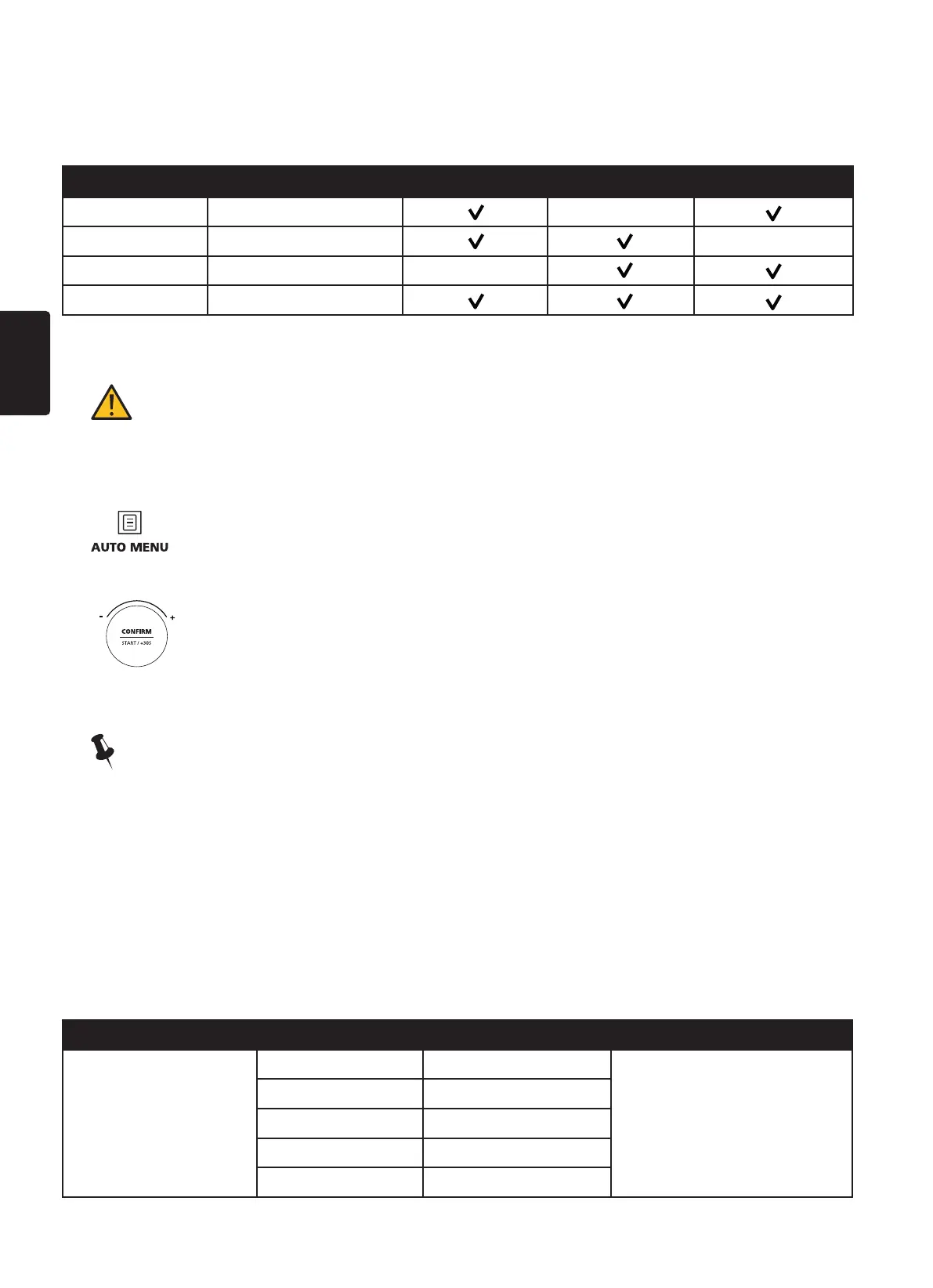 3. Réglez le menu souhaité en appuyant une ou plusieurs fois sur le bouton AUTO-MENU ou