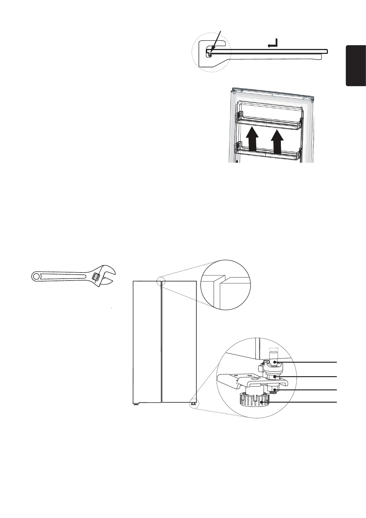 stelmoer met de klok mee. Om de koelkastdeur lager te stellen, draai de stelmoer tegen de klok in. Wanneer beide