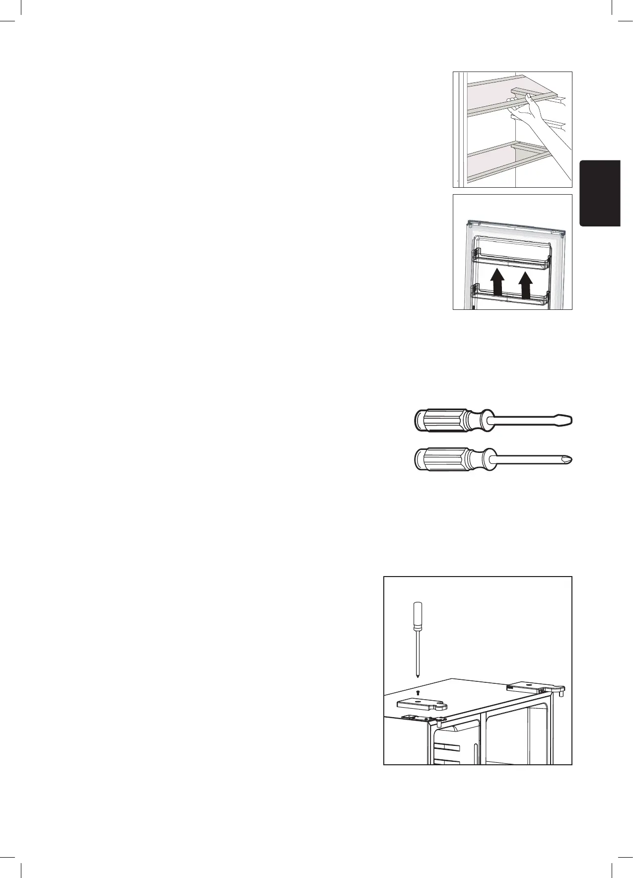 the shelves can be inserted if desired. To remove the shelf, lift it rst and then pull