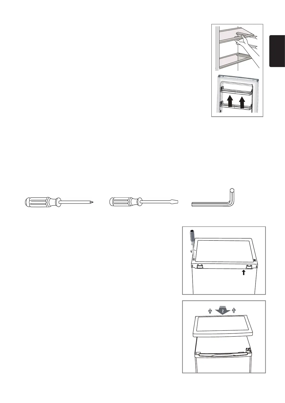 • Bewaar alle verwijderde onderdelen om de deur later opnieuw te monteren.