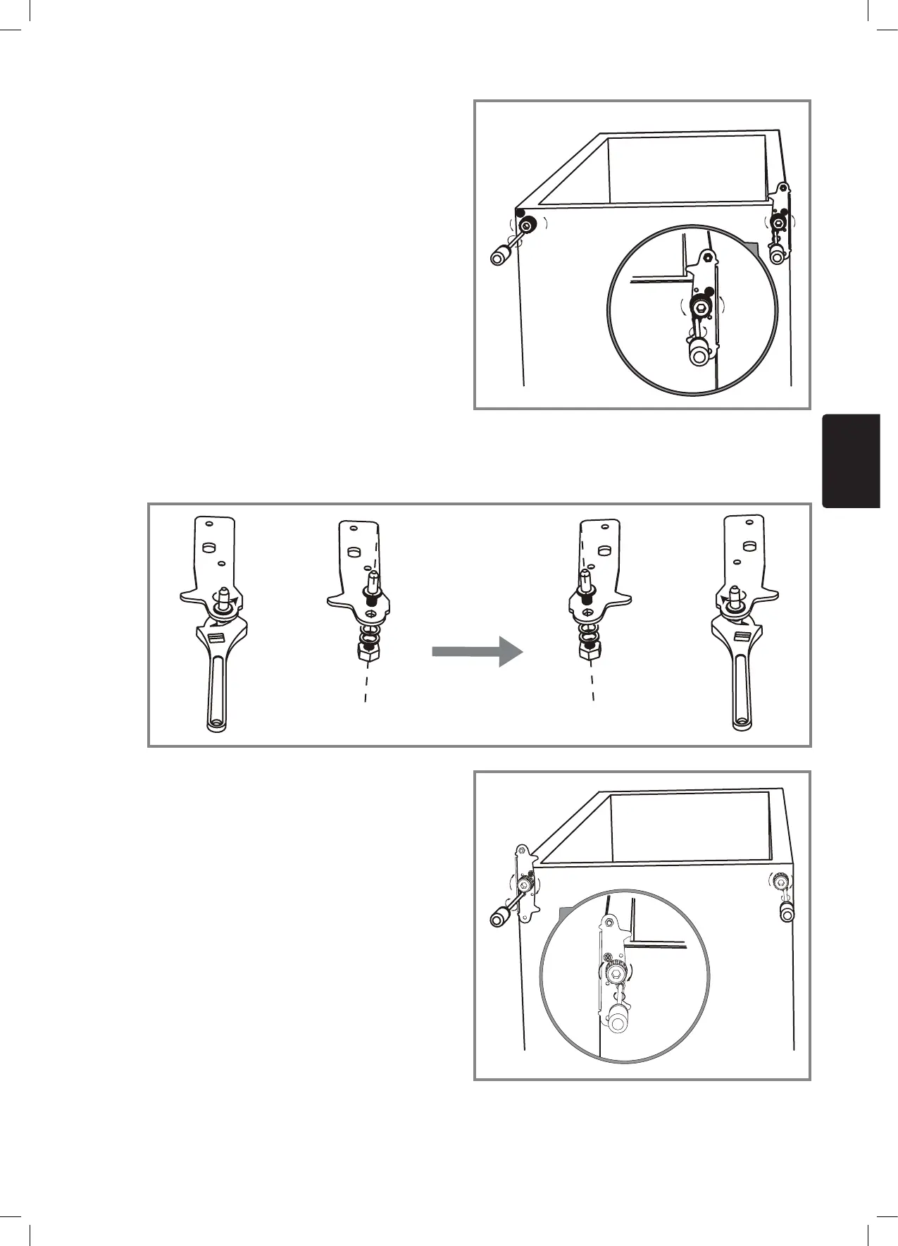 5. Demontieren Sie den unteren Scharnierstift. Drehen Sie den Bügel um. Schrauben Sie den unteren Scharnierstift