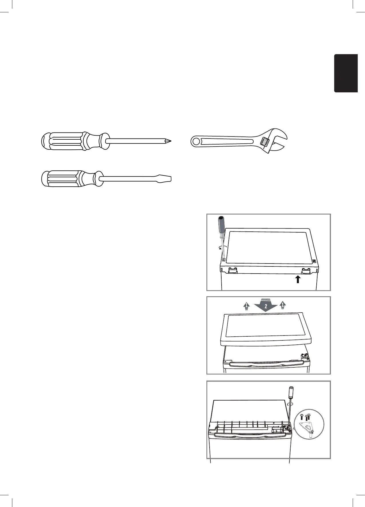 • Bewaar alle verwijderde onderdelen om de deur later opnieuw te monteren.