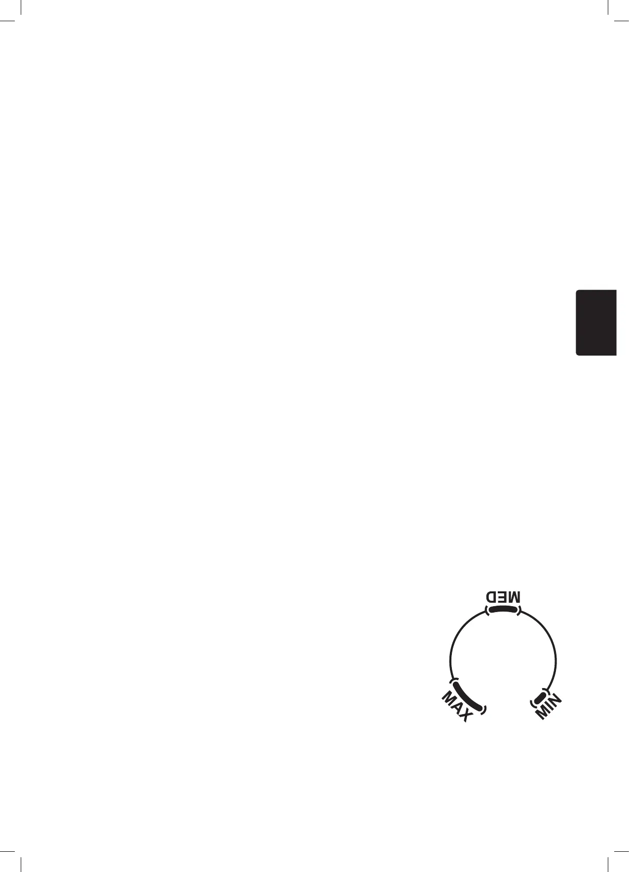 • Der Thermostat kann auf 3 Stufen gestellt werden: ‚MIN‘, ‚MED‘ und ‚MAX‘.