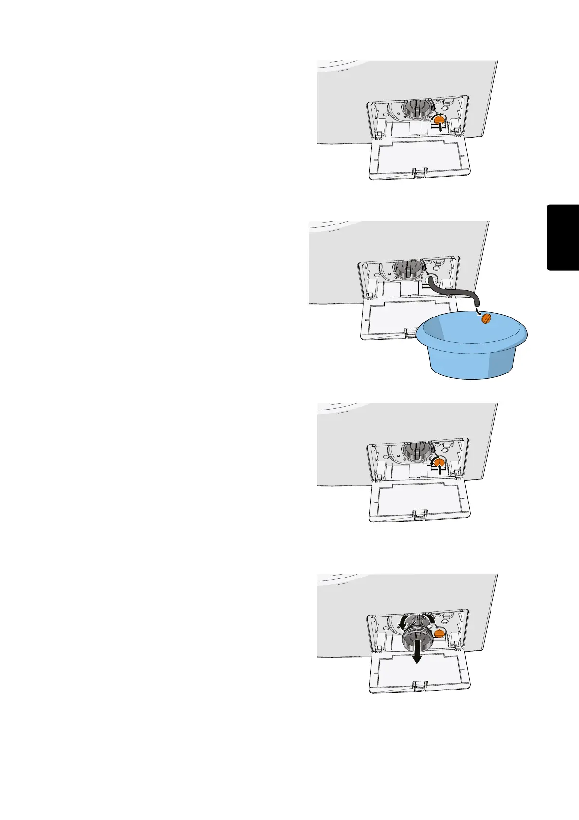5. Retirez le bouchon orange du tuyau de vidange. Attendez