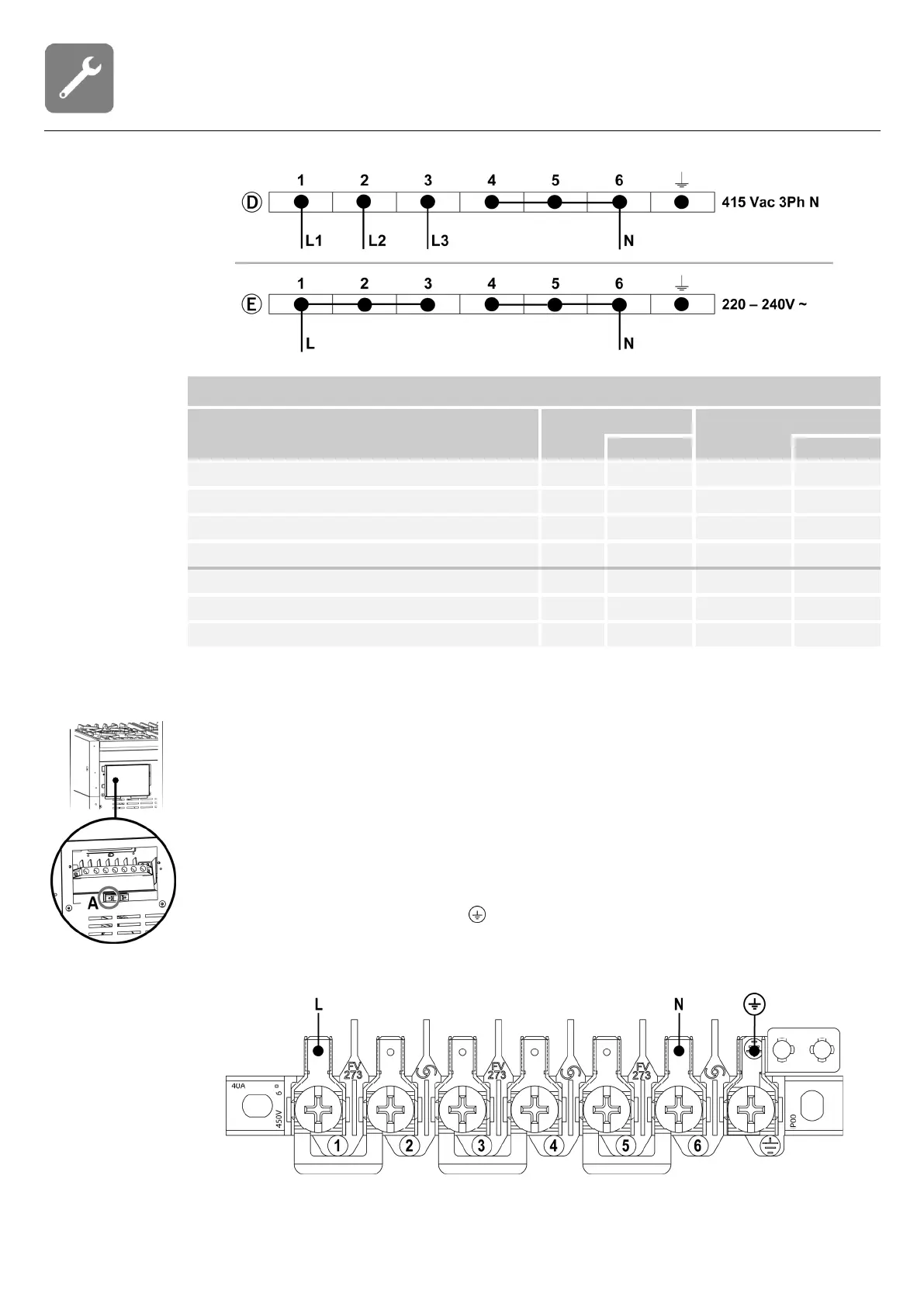 Neutral ”blå” kabel måste anslutas till plinten märkt med bokstavenN.