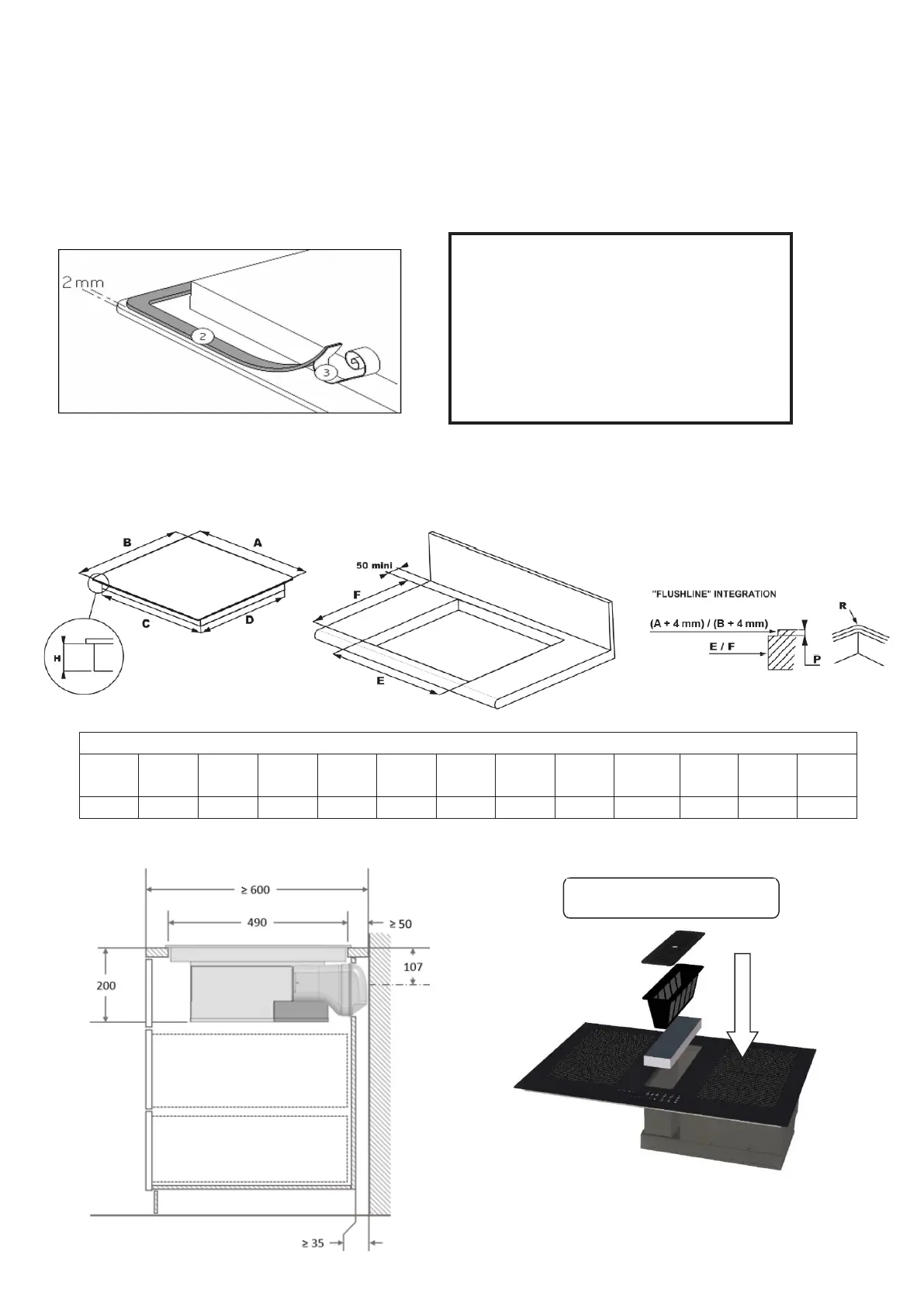 • The hobs are classified as “Y” class for heat protection. Ideally the hob should be installed