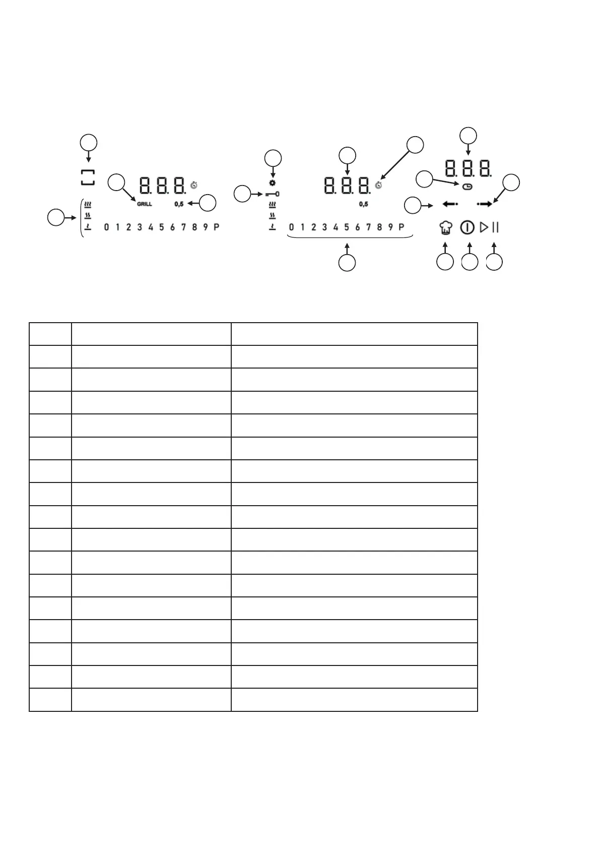 15 Effekttrin (varmetrin) / timer display Display for varmetrin og timer