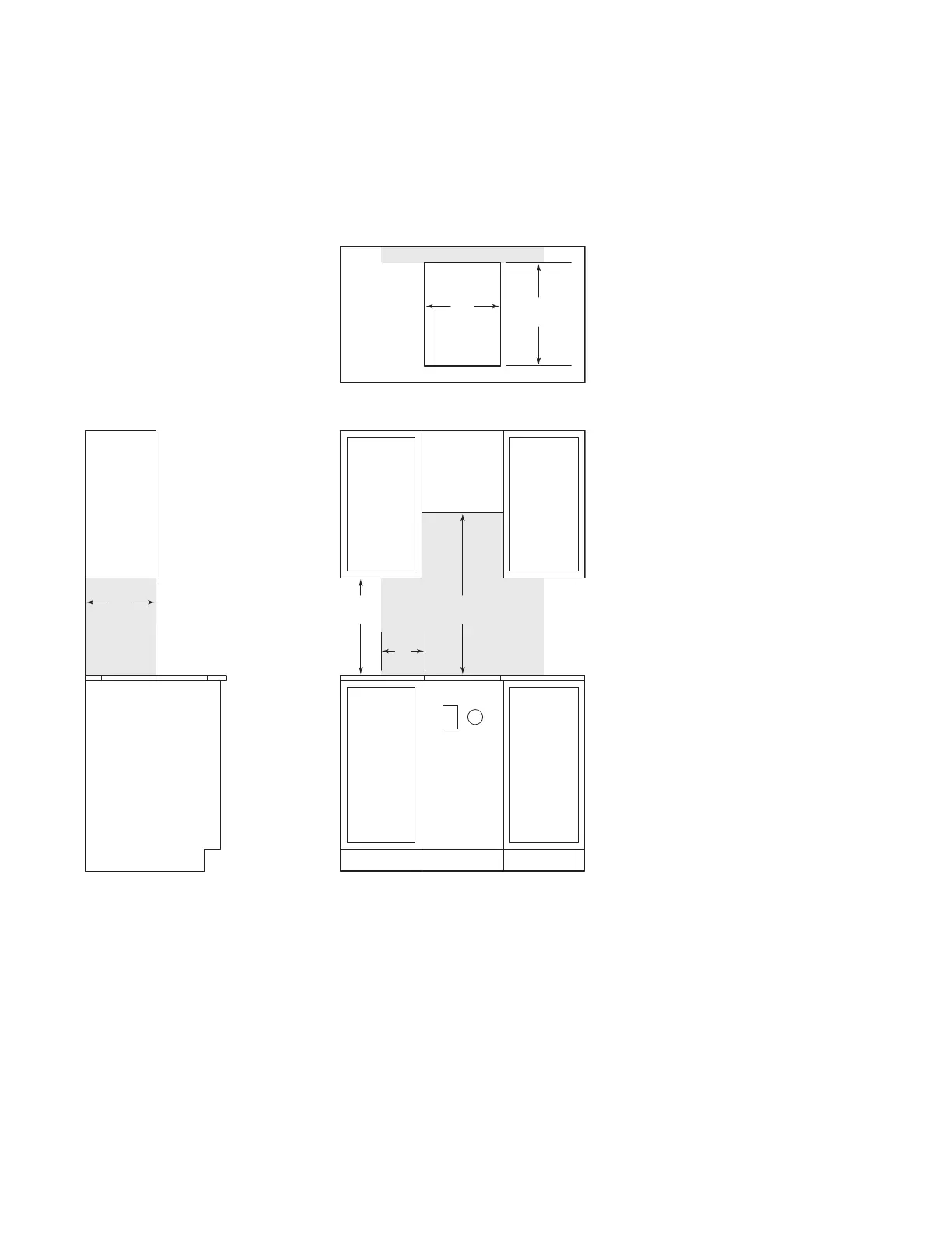 TE: Shaded area above countertop indicates minimum clearance to combustible surfaces,
