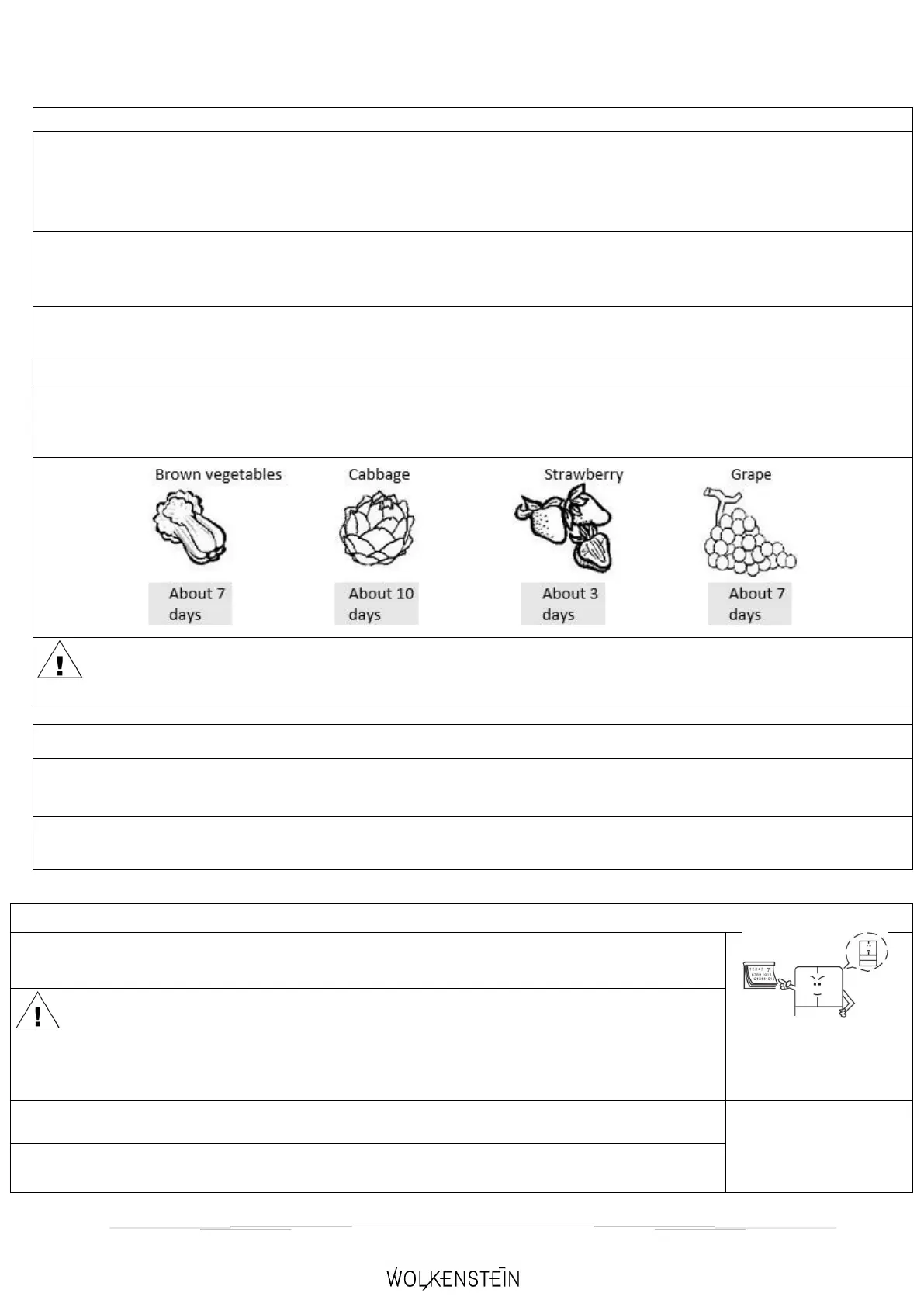 ★Die Lagerzeit hängt von der Frische der Lebensmittel vor der Lagerung und dem Zustand des Kühlschranks ab. Hier werden nur ungefähre