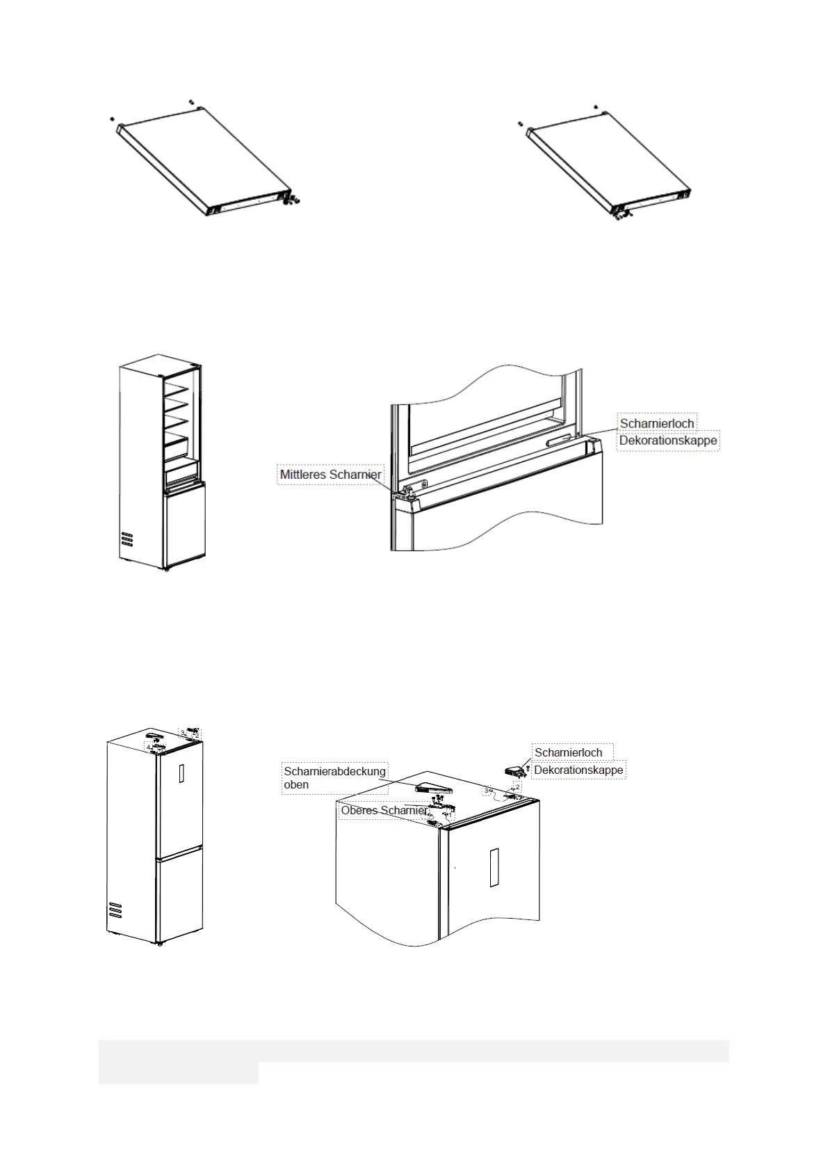 8) Setzen Sie den Kühltürkörper auf das mittlere Scharnier und montieren Sie das