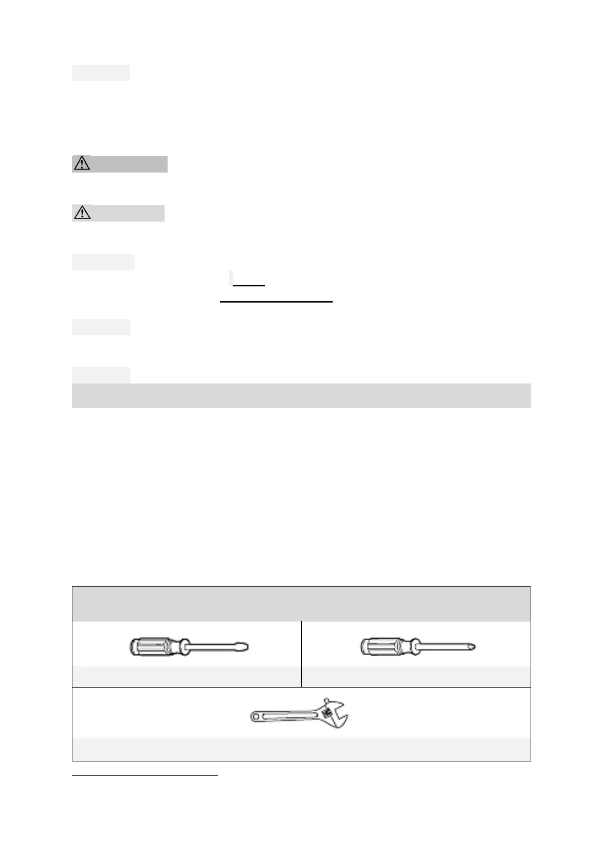 TOOLS REQUIRED (NOT INCLUDED IN THE SCOPE OF DELIVERY)