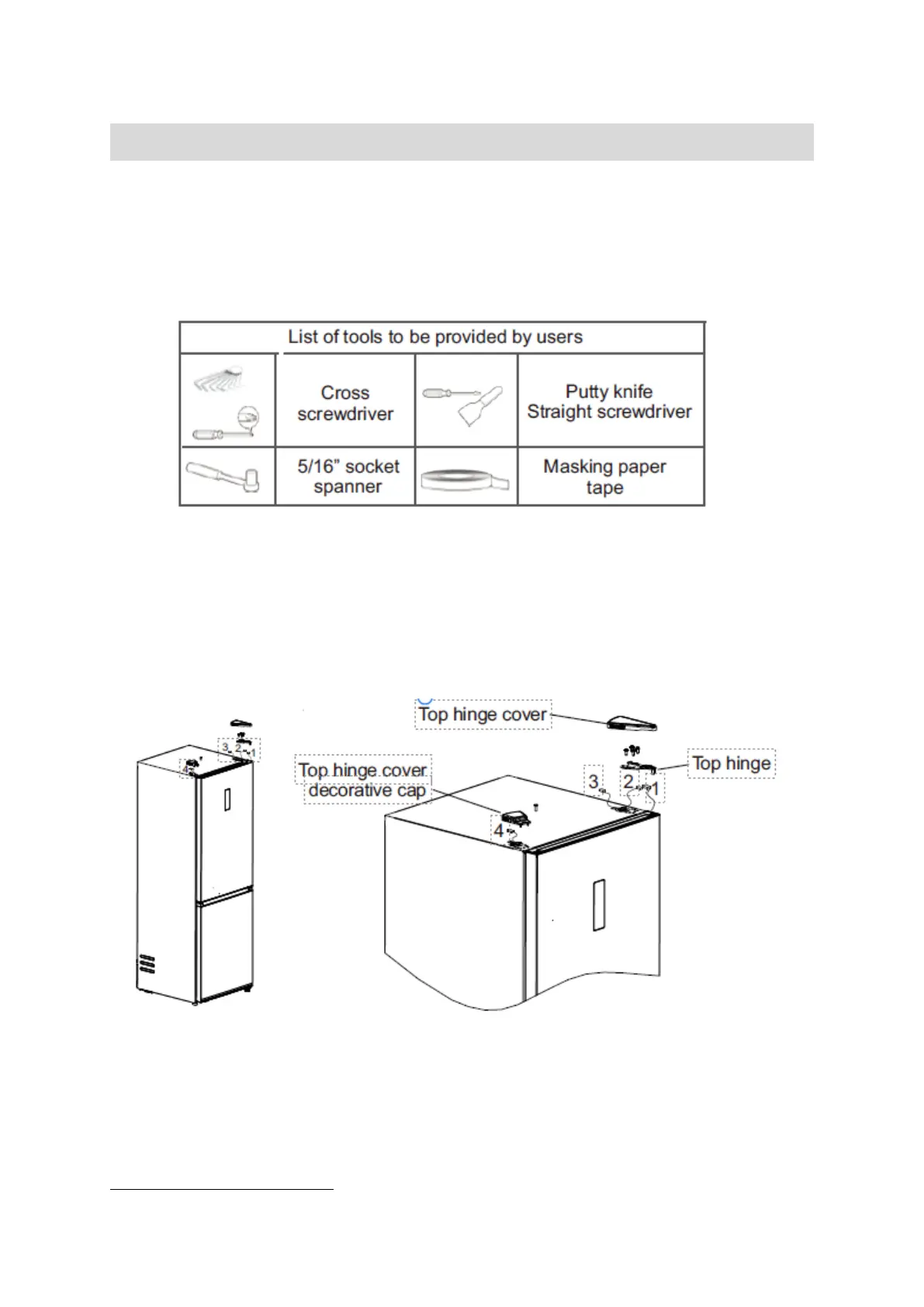 2) Remove the upper hinge cover, hinge cover decorative cap and upper hinge,