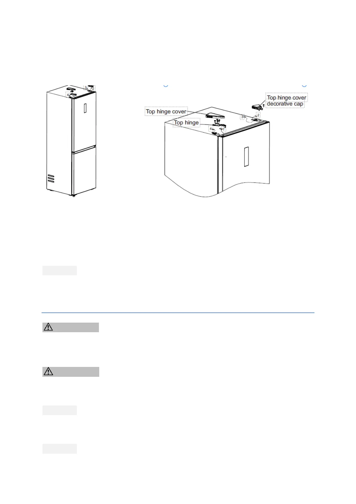 8) Place the refrigeration door body on the middle hinge and install the upper hinge;