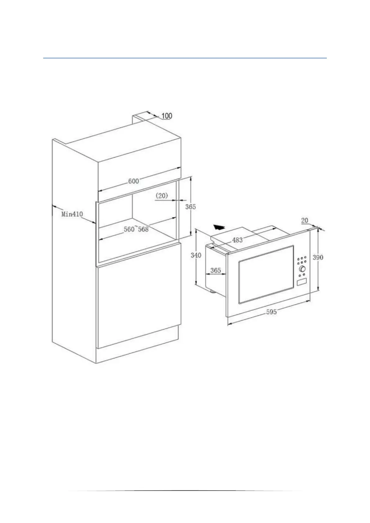 Above the appliance: 20 cm.