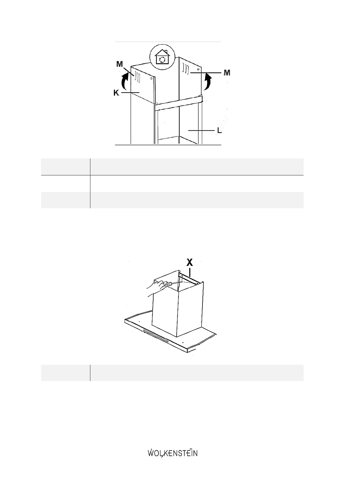 8. Place the whole chimney (K + L) on the extractor hood (s. fig. below). Fix the