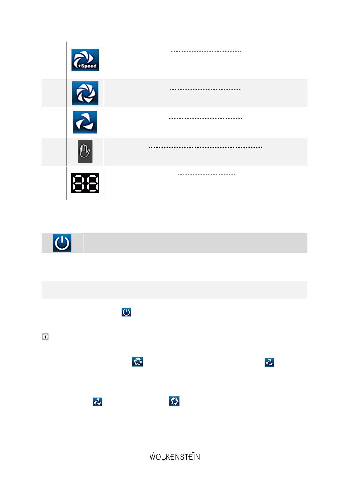 repeatedly to set the desired power level of the extractor hood (power level 1 - 4).