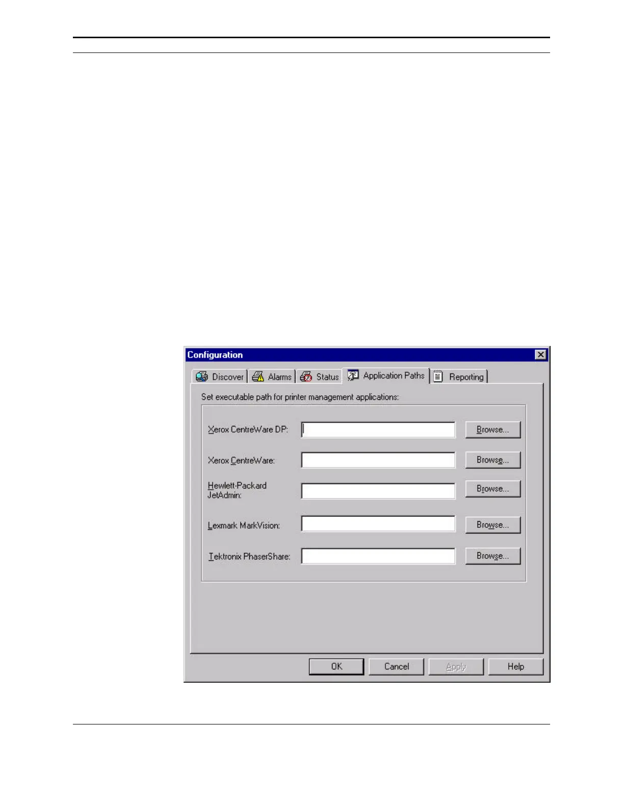 Each time the Configuration window is accessed PrinterMap searches the system’s