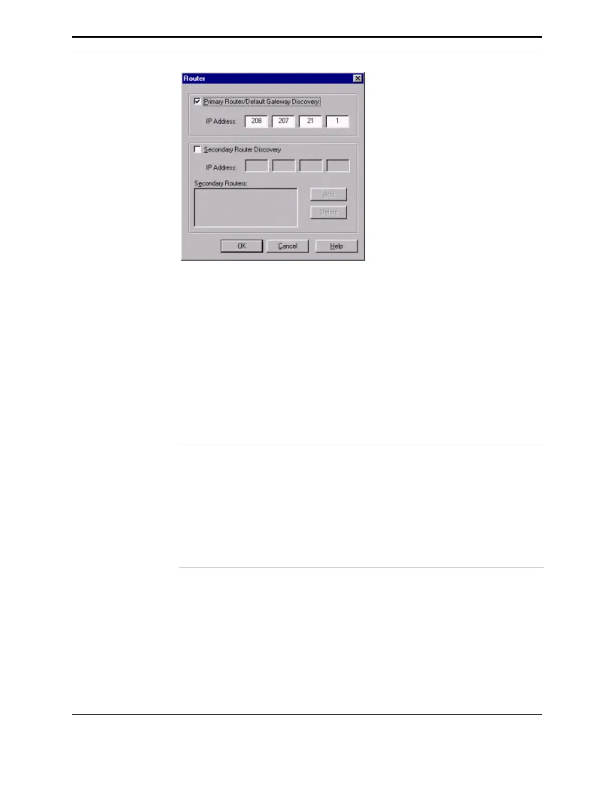 To perform a secondary router discovery, check this box. IP addresses of multiple