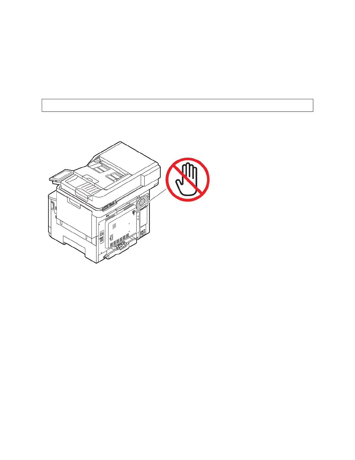 WWaarrnniinngg:: Do not touch cables or the printer in the area shown while actively sending or receiving a fax.