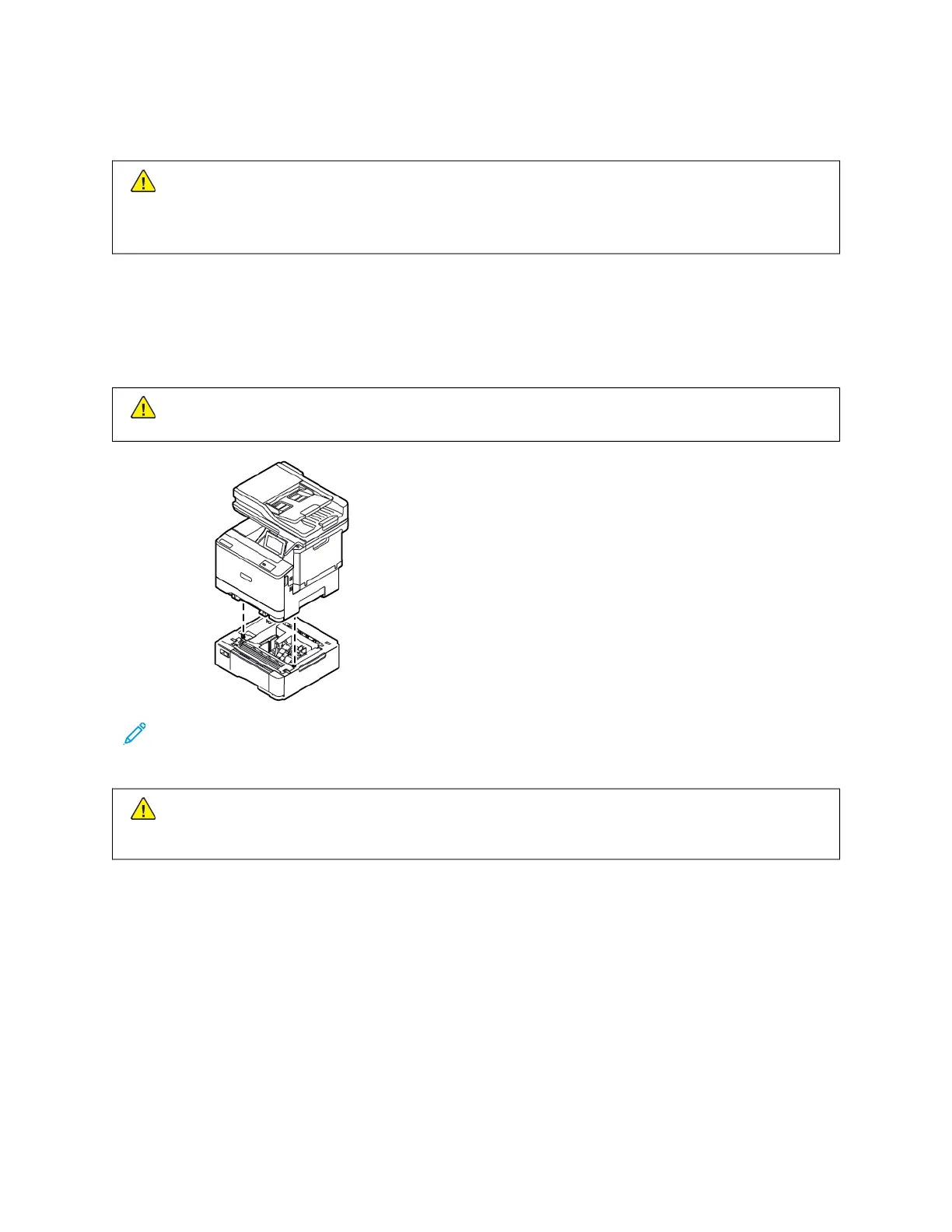 Note: If you are installing any optional 550-sheet Trays, place them below the Optional 550+100-sheet Tray.