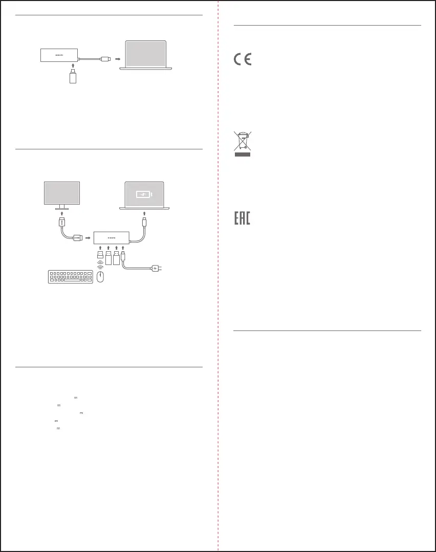 1. Перед использованием концентратора убедитесь, что порт Type-C ноутбука