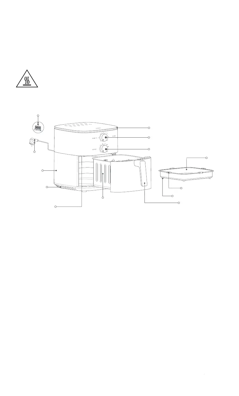 1. Hava fritözünü sabit, düz bir yüzeye yerleştirin ve hava fritözü çevresinde hava sirkülasyonu olmasını