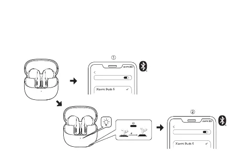 function button for 2 seconds until the indicator light blinks white, indicating the earbuds are ready to