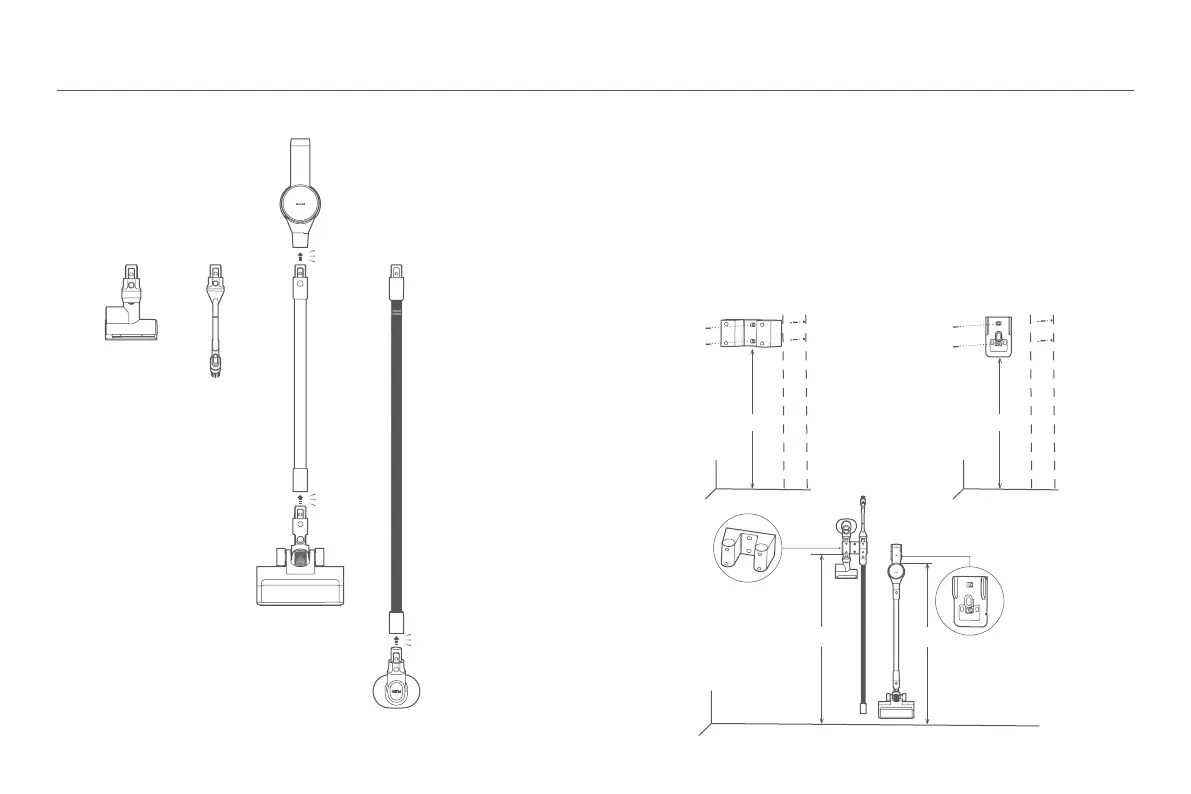 di 124,0 cm da terra e il supporto da parete per aspirapolvere a 120,0 cm. Mantenere una distanza consigliata di