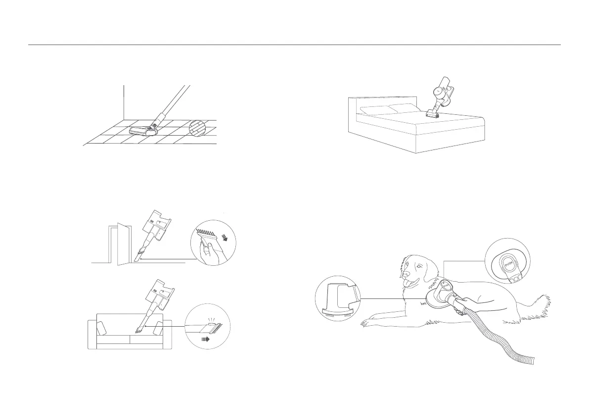 • Pour étendre l’espace de déplacement, connectez le tuyau d’extension à l’aspirateur.