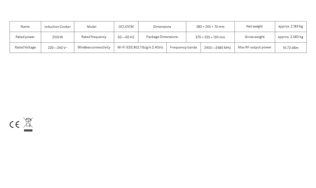 Hereby, Shanghai Chunmi Electronics Technology Co.,Ltd. declares that the radio equipment type Induction Cooker is in compliance with Directive 2014/53/EU. The full text of the EU declaration of