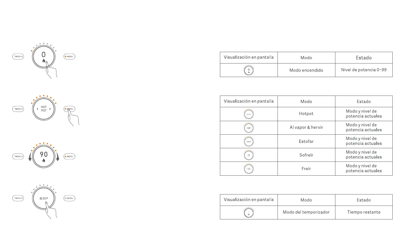 cambia a modo encendido y está listo para cocinar.