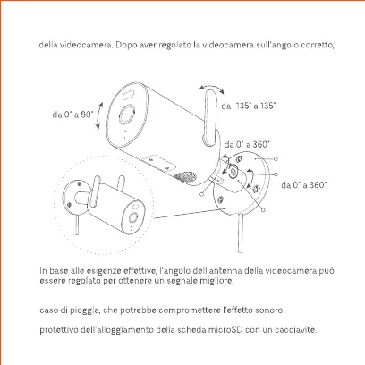 (2) Regolare la posizione del giunto sferico (0°-360° di rotazione e 0°-90° di inclinazione).
