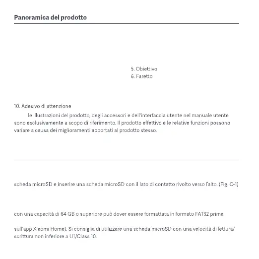 Il modello, i parametri e le informazioni sulla sicurezza della videocamera sono riportati nel