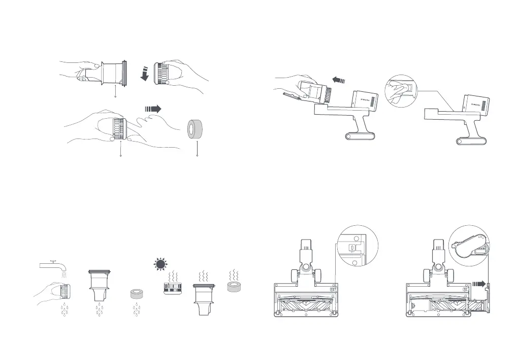 • If the suction power is still significantly reduced aer the filter assembly is cleaned, you