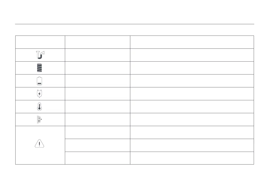 If the vacuum cleaner is not working properly, the display will show an error message. Please refer to the troubleshooting table below to find your solution based on the