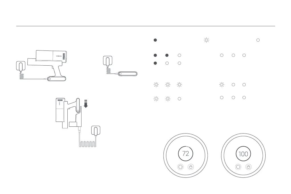 • Quando l'aspirapolvere è completamente carico, l'indicatore si spegne dopo 1 minuto e