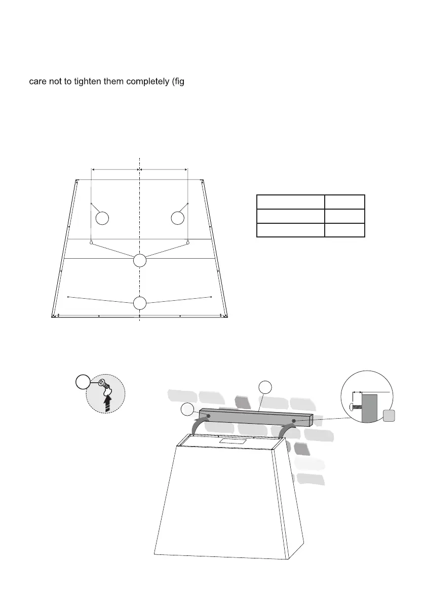 - Insert screws “A” into bracket “B” according to the measurements shown in the table, taking