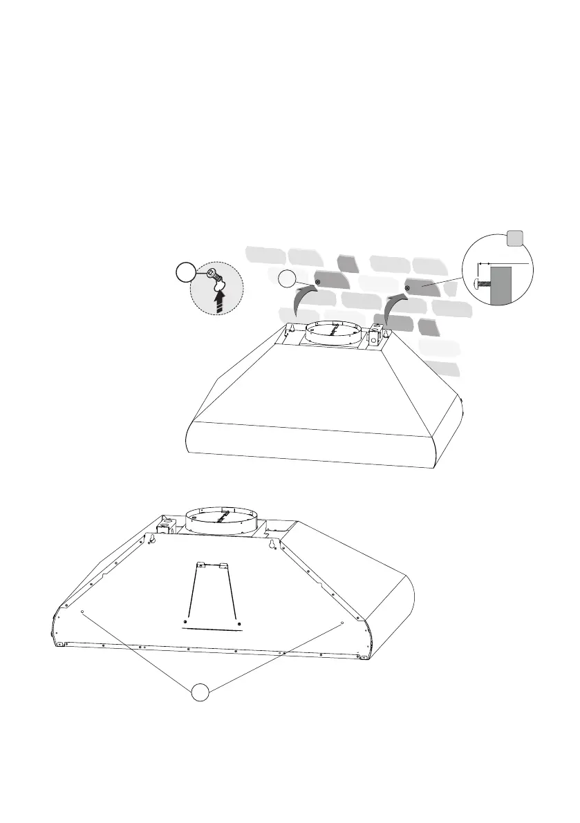 - Position the unit on the wall by hooking it onto the screws “A” previously inserted.