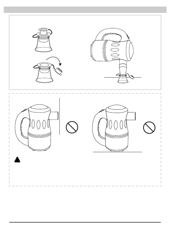 • Do not operate the machine with air inlet or outlet against any flat surface