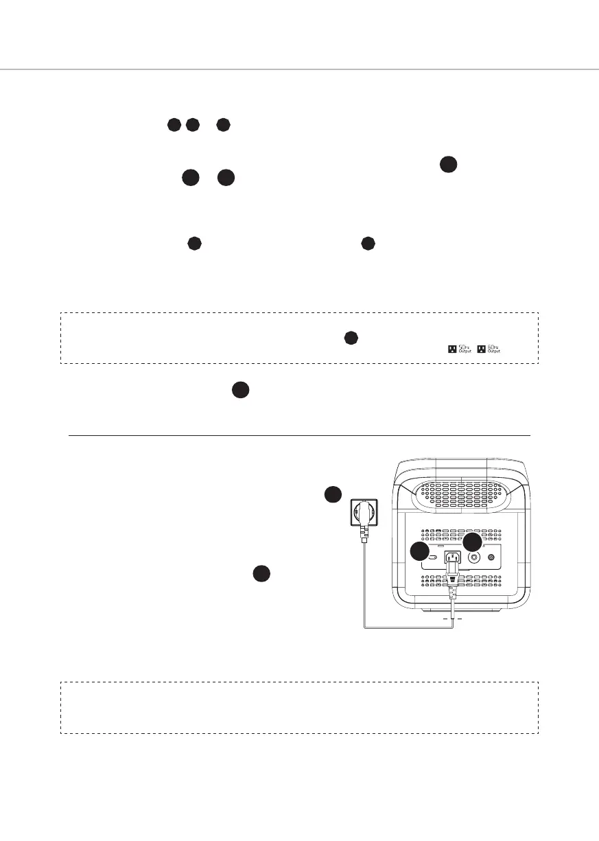 AC-inngang. Trykk deretter 2s lenge på AC-utgangsknappen 8 . Hvis endringen er vellykket, vil