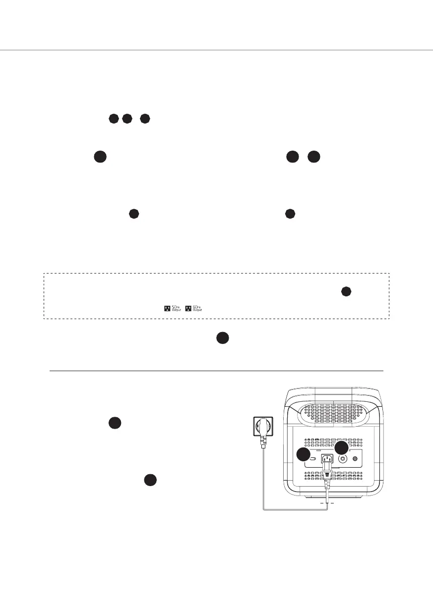 maitinimo jungiklį 8 , kad įjungtumėte kintamosios srovės išvestį 7 . Dar kartą trumpai