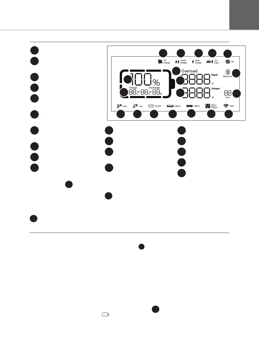 ühendatud vooluvõrgust, pv-, autolaadijast või võtmeoperatsioonist, süttib LCD-ekraan