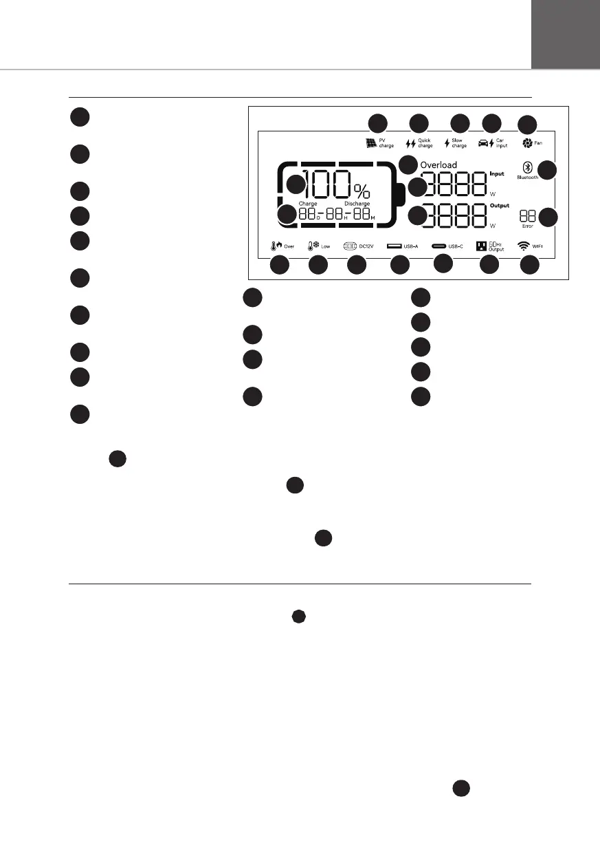 estação de energia entrará no estado de hibernação. O ecrã LCD desliga-se automaticamente.