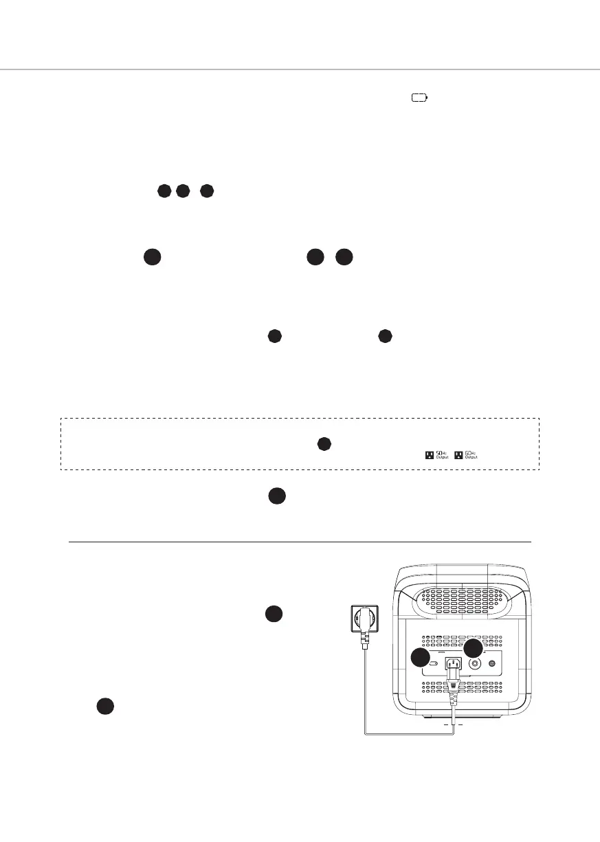 interrutor de alimentação de saída CA 8 para ligar a saída CA 7 . Prima brevemente o
