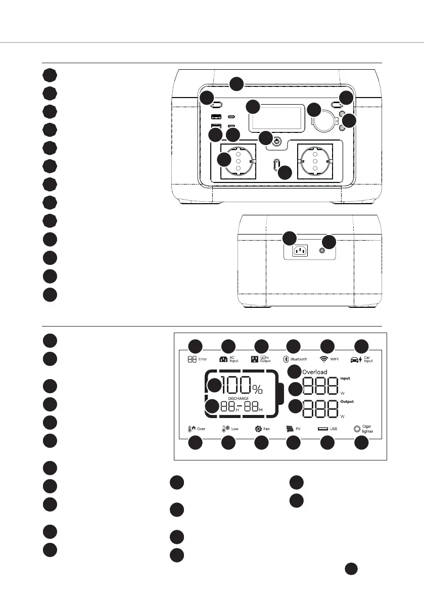 Batteriets kapacitet: När elcentralen laddas börjar det återstående batteriets procentandel 14 att