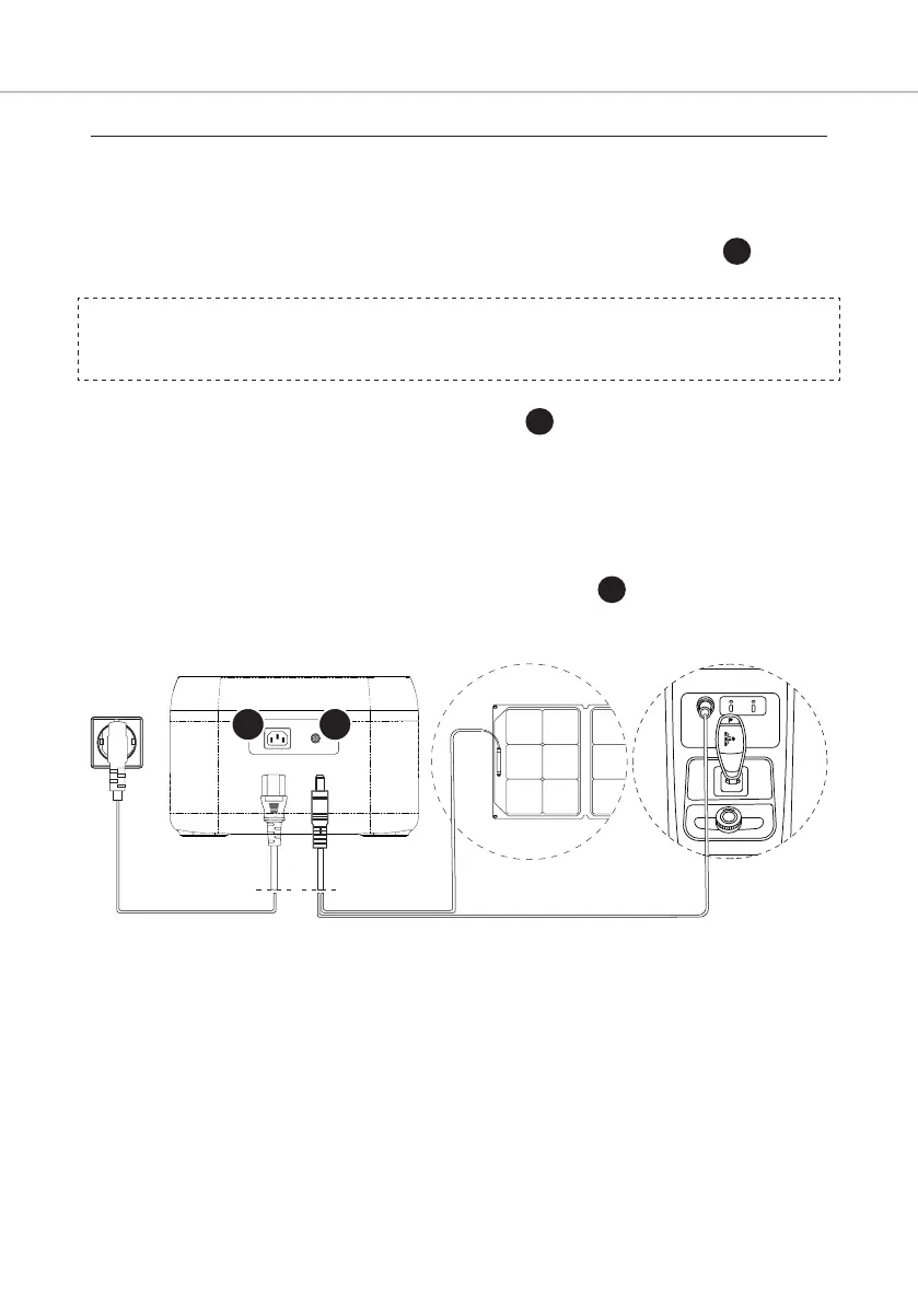• Elektrijaama saab laadida päikesepaneeli/auto laadimise sisendi 13 kaudu, kasutades