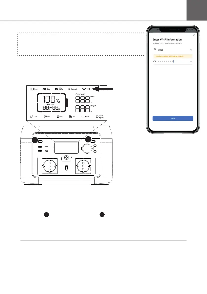 iluminare LED 2 , cât și a butonului de ieșire DC 5 . Pictograma Wi-Fi va începe să clipească pentru a