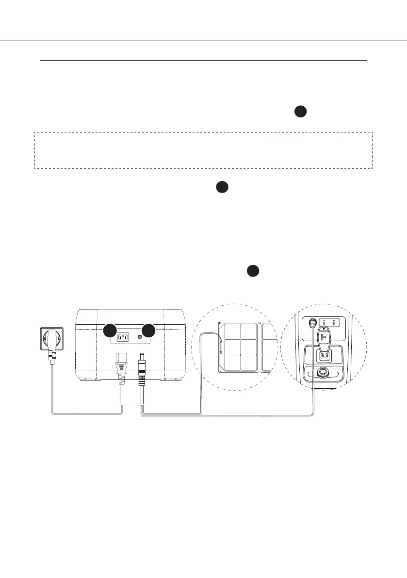 • Die Energiestation kann über den Solar-/Autoladeeingang 13 mit dem Ladekabel DC7909 und